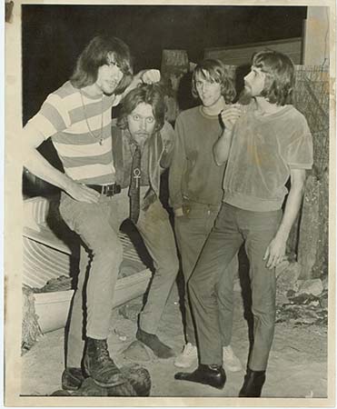 "The Crossing Guards" outside the Sea Witch on Sunset Blvd. - 1966 (copyright Everett Hayes, Jr.) L to R: Alan Brackett, Lance Fent, John Merrill, Jim Voigt |